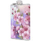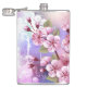Artiskt ritad, gren av rosa, körsbärsfärger på blommar på picturesque, texturerad bakgrund, målad med vit, rosa och blå färg. Rosa Sakura