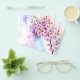 Artiskt ritad, gren av rosa, körsbärsfärger på blommar på picturesque, texturerad bakgrund, målad med vit, rosa och blå färg. Rosa Sakura