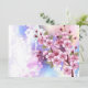 Artiskt ritad, gren av rosa, körsbärsfärger på blommar på picturesque, texturerad bakgrund, målad med vit, rosa och blå färg. Rosa Sakura