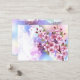 Artiskt ritad, gren av rosa, körsbärsfärger på blommar på picturesque, texturerad bakgrund, målad med vit, rosa och blå färg. Rosa Sakura