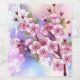 Artiskt ritad, gren av rosa, körsbärsfärger på blommar på picturesque, texturerad bakgrund, målad med vit, rosa och blå färg. Rosa Sakura