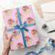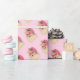 Vintage Jultomten med rosa hatt på baksidan av pastellrosan.