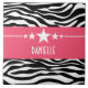 Trendig och modern Sassy Star Zebra Tile med en chic svart och vit zebra tryck-bakgrund och en fet magenta gräns med en roligt stjärnmotiv. Den här giftiga designen kan anpassas med den personlig du väljer. Klicka på Anpassa om du vill söka efter fler anpassningsalternativ.