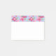 Anteckningsblocket efter det har en skandinavisk design av blommor och löv i olika skuggor av rosa och grönt på blå fält.