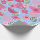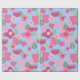 Detta papper har en skandinavisk form av blommor och löv i olika skuggor av rosa och grönt på en fält av blått.