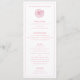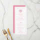 Rosa och vit middagsmeny med illustration av vintagens snäcka. Perfekt för en elegant strand eller en jakt klubb bröllop eller annan speciell händelse. Layout är för 4- års måltid. Klicka på "anpassa" om du vill lägga till mer text eller ta bort inslag, t.ex. snäckan.