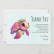 Tack kort med en söt illustration av en havssköldpadda. Rosa kropp och snäcka med blommigt. Ser lycklig och förtjusande ut.