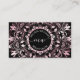 En rosa glansig metallisk, intrikad blommigt mandala med logotyp och initialer, namn och yrke med svart bakgrund. På baksidan finns en skannerbar fyrkantig kod för webbplatsen. Perfekt för salon, hår- och makeup, skönhet, yogalärare, boutique eller vilken kvinnlig företagare som helst.