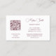 En rosa metallisk intrikat blommigt mandala på vit bakgrund. Grund-delen har en vit text fält med ett klassiskt handskript för elegant. På baksidan finns en skannerbar fyrkantig kod för webbplatsen. Perfekt för salon, hår- och makeup, skönhet, yogalärare, boutique eller vilken kvinnlig företagare som helst.