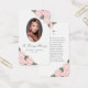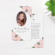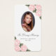 Elegant minneskort för rosa och silver blommigt/begravningskortet med ett foto med rosa vattenfärg ro och baby utandblommor på en vanlig bakgrund.