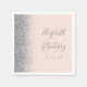 Den lämnat kant i denna elegant moderna bröllop-servetter har en silver faux glitter-design. Anpassadet kombinerar grått-handskrift och typsnitt över ett stort område på en rosa.