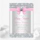 Rosa Silver Glitter Glam Babyflicka Shower Inbjudningar