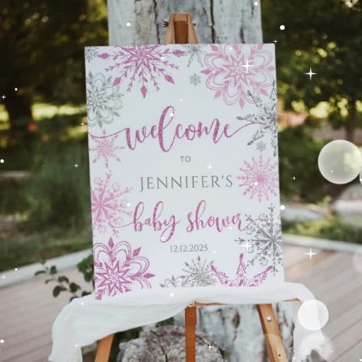 Rosa Silver Snöflingor babydusch Ett Bordsnummer Matchningsartiklar finns tillgängliga.