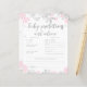 Modern babydusch-förutsägelser och rådgivningskort från baby med motiv för rosa och snöflingor i silver vid vintern, med texten "önskemål för baby".