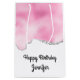 Presentförpackning med en stilren rosa bomullskant med silverglitterkant (falskt glitter).