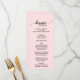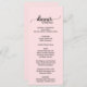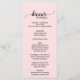 Det här rosa-menykortet med enkel kalligrafi i bröllop är perfekt för ett elegant bröllop. Utformningen har ett romantiskt och sött, flytande, kursivt teckensnitt på en vacker och känslig bakgrund för rosa av ballett.