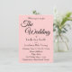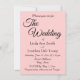 Enkel stil, bröllopsinbjudan som innehåller en trendig, bakgrund för rosa färg tillsammans med framtida brid och groom namn och händelsemedatum, tid, plats och register tryckt i svart, stiliserad skrift. Anpassa din bröllopsinbjudan genom att ersätta information med din egen. Markera inbjudan papper stil och kvantitet. Designad för samordning med vår Rosa Simple Stil Bröllop-samling.