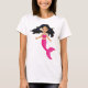 Rosa sjöjungfru konst tecknad av en söt, giftig sjöjungfru med svart hår och rosa svan på anpassade färg bakgrund.