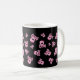 Denna skalledesignmugg täckas flickaktigt med gullig rosa döskallar med pilbågar. Det finns också rosa crossbones under varje skalle.