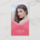 Modern affärskort med en geometrisk utformning med rosa lager på framsidan, där du också kan lägga till foto och färg baksida på baksidan. Affärskortet i social är idealiskt för olika yrken som konstnärer, fotografer, skådespelare, förebild, bloggare, vloggare osv. Alla som vill ha ett sätt att låta människor de möts i det verkliga livet veta hur de hittar dem och deras online i arbete/portfölj och på social-medier. Anpassa den genom att ersätta platshållartexten och ersätta exemplet/platshållarfotot med ett eget foto. Om du vill ha fler alternativ som att ändra teckensnittet och det är storlekt/färg eller mellanrummet mellan brev klickar du på knappen "Anpassa". *Observera att Zazzle Watermark som visas i zoomförhandsvisningen INTE visas på den färdiga tryckta produkten. © Rosewood and Citrus