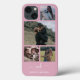 Elegant Monogrammed Rosa Photo Collage iPhone 13 Fodral - Behåll 4-fotokollage med en anpassningsbar calligraphy monogrammall för ditt förnamn och efternamn initialer och fullt namn under skiljelinjen på en ljus rosa bakgrund.