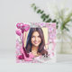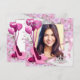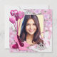 Vackra rosa blommor, rosa högklackade skor, rosa ballonger och diamanttiara foto Quinceanera-inbjudningar. Denna eleganta rosa Quinceanera-inbjudan anpassas enkelt för ditt evenemang med ditt foto, typsnittsstil, formulering osv.