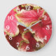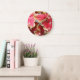 Lysa upp ett rum med denna stilrena väggklocka med vita siffror som har en fotobild av rosa, skrynkliga Caladium blad, en tropisk växt. En vacker, blommig design! Använd för att dekorera vardagsrum, matsal, kök, sovrum eller något annat rum. Välj din klockas storlek och stil.
