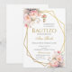 Rosa släde dopblomma inbjudan på spanska, Inbjudan med rosa släde för dop på spanska