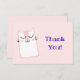 Ett tackkort med en illustration av ett sött sovande kattunge. Öga stängde tittar lycklig och fredligt. Ställ in på en rosa för blek. Meddelandet på baksidan kan anpassas så som du vill. På baksidan av kortet finns också en illustration av en vikande katt i svartvitt.