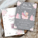 Rosa Sleigh Cute Nalle Grått Baby Shower Inbjudningar