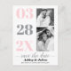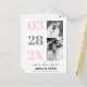rosa och slutlig grått två foto Spara vykortet för datum. Datumet visas i rosa och grått-typografi i en spalt och två foton av paret. Uttrycket "Spara datumet" finns i skriptet stil typografi.