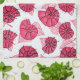 Rosa sniglar kökshandduk med mönster skapat från en bläck teckning av abstrakt snigel snäckor med dekorativa vita prickar in från löv.
