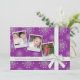 Bakgrunden på detta platta Julhälsningar kort är rosa med vit snöflingor accinerad med färggranulat. Den är väl inlindad med ett vitt band och en vit båge. Ladda upp dina egna foton till det 3 retroinspirerade ramarna för att slutföra utseendet. Kortets baksida har samma utformning, minus de tre fotografierna. Anpassa texten med ditt namn och personliga meddelande. Har du problem med att anpassa kortet? Kontakta gärna butiken så hjälper vi dig utan extra kostnader. : : Finns i olika färg: : Denna design är upphovsrättsskyddad och får inte kopieras eller mångfaldigas på något sätt.
