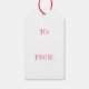 Dessa rosa och orange snöflingor dekorerar denna uppsättning Juletiketter.