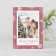 Rosa snowflake-fotojulkort med snöflingor på en snövit rosa bakgrund. Anpassa det här fotojulkortet enkelt med ditt foto och din familj namn.
