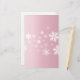 Ett baner av snöflingor i vit över en rosa bakgrund