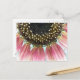 Det här söt vykortet innehåller ett detaljerat, närfoto av en söt rosa Solros. Fotografiet togs med hjälp av makrofotografi och visar de pulserande petalerna för rosa och den fina blommans invecklade detaljer.