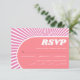 Rosa solstrålar, 70-sekunders inspirerat bröllop OSA Card. Om du tittar ett svarskort för bröllop OSA som återspeglar kärlek under 70-talet stil, kan du tycka om den här rosa solstrålningsreflexdesignen. Det här kortet har ett utmärkande ram som ramar anpassningsbarnas text i ett teckensnitt för funkyns vintage. Bakgrunden är fylld med rosa solstrålar som skapar en vibrerande kontrast. På baksidan av kortet finns en upprepad mönster i OSA brev i rosa och vitt, vilket ger ett litet lukt. Det här kortet är perfekt för att ge gästerna veta hur de ska svara på bröllop.