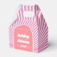 Om du vill ge dina gäster en minnesvärd souvenir på din speciella dag, är den här bröllopsförmånslådan perfekt för dig. Den har en pulserande rosa och en strålande solnedbrytning i rosa och vit bakom. Namnen på briden och trimmen skrivs ut i ett funky-retrotypsnitt som matchar 70-talets tema i bröllop. Den här bröllopsaffären är en roligt och ett färgstarkt sätt att tacka dina gäster för att de firar med dig. Du kan fylla det med godis, choklad eller andra små slitningar du gillar.