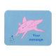 Färgning av en rosa som flyger gris med ett trollspö skapar blå stjärnor, med en platshållare för ditt budskap, tryckt på flexibla magneter.