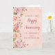 Lycklig-bröllop-årskort för son och dotter i juridik med elegant rosa vattenfärgen rosor och vår greenery, med faux ro guld mönster.