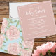 Den här designen har rosa blommigt botaniska ro blommor, med botanisk söt av grönt löv, en enkel kalldusch för spädbarn från flicka, ett minimalistiskt modernt fullt-blekt foto, en elegant giftig feminin-chic söt, ett snyggt-kalligrafi, uppgifter om födelsestat, en klassisk traditionell trendig, en shabby chic , en beundransvärd rosa ros.
