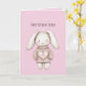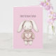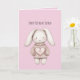 Rosa söt fin kanin rosa tröja hjärta födelsedag kort