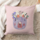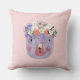 Rosa söt vild djur med blommor för flickrum kudde