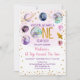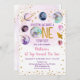 Rosa Space Galaxy Girl First Birthday Inbjudningar