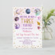 Rosa Space Galaxy Girl Tredje födelsedagen Inbjudningar