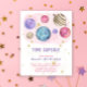 VATTERCOLOR Magic galaxy rymden tog upp födelsedagsinbjudan. Planeter och stjärnor i rosa, lila, guld.