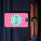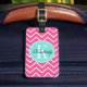 Rosa sparre med turkosmonogramen bagagebricka