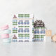 Mina tavlor av blå och vit ingefära burk, rosa och blå Staffordshire hundar och topiarier.
