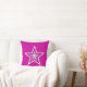 Modern design med en "strålande" rosa och vit stjärna på rosans färgad baksida på framsidan och en vit baksida. Dekorativ kudde med ett anpassade som du kan anpassa med din egen text, bilder och dina idéer. Det här är en digitalbild som skapas med originalfotografier och digitalteknik och som trycks på tyg, som inte skiner eller innehåller riktiga miniatyrbilder.